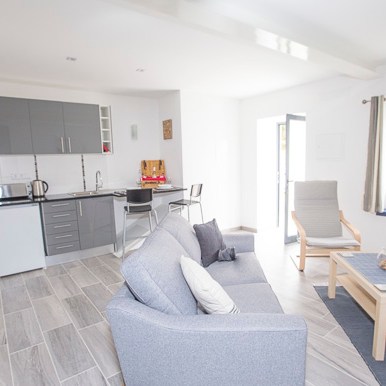 Ocean Mist– sleeps 2 – Ground floor, large studio Suite with twin bedroom area, large private bathroom, fitted kitchen and private lounge.