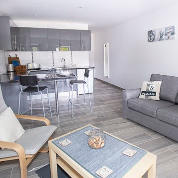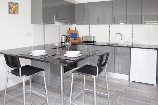 The kitchen is fully fitted with a fridge/freezer, oven, hob, kettle, toaster and all utensils. There is also a breakfast bar with stools for indoor eating.